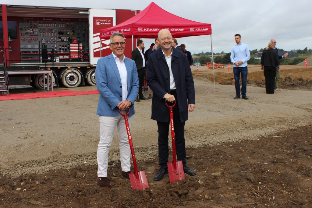 Så er første spadestik taget til et nyt, moderne domicil og distributionscenter på over 20.000 m² til Kramp – Europas største leverandør af reservedele og tilbehør til landbrug, skovbrug og byggeri. Vejles borgmester Jens Ejner Christensen og Roeland Tjebbes, der…